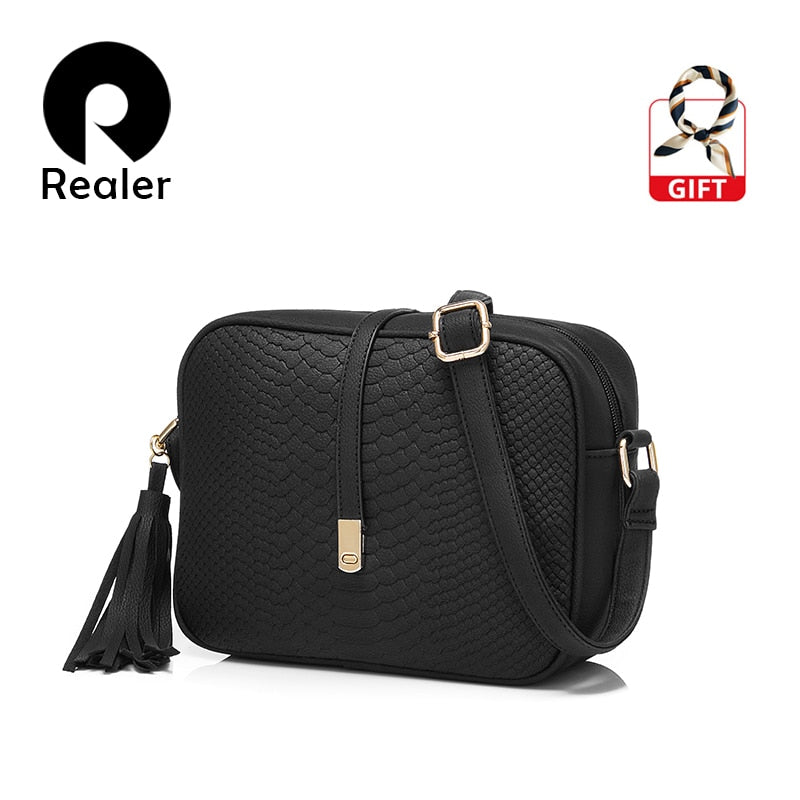 REALER small shoulder bag for women messenger bags ladies retro PU leather handbag purse with tassels female crossbody bag