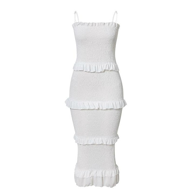 NEDEINS Summer Fashion Sling Long Dress Women 2020 Casual Party Dress Female Ruffles Vestidos Plus Size Natural Solid Dress