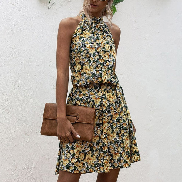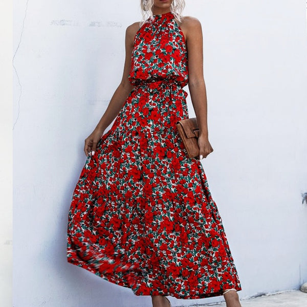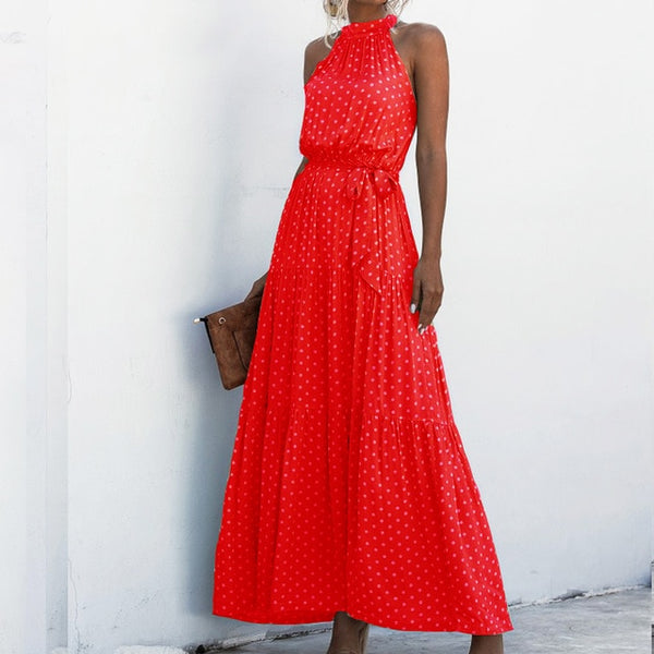 Summer Elegant Sexy beach long Dress Women 2020 Fashion Print Flowers Polka-dot strap Ladies Halter boho dress women vestidos