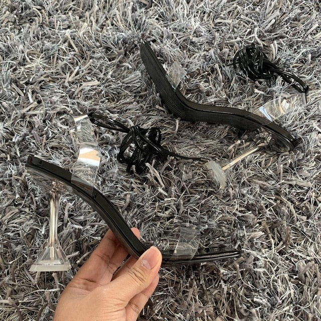 Summer High 10.5CM Heels Women Pumps Ankle Cross Strap Sandals Shoes Woman Ladies Peep Toe High Heels Dress Party Shoes Woman