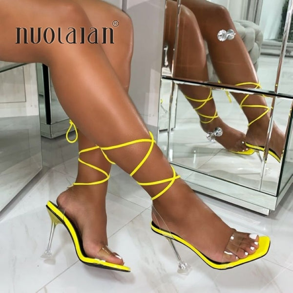 Brand Name: nuolaianPump Type: GladiatorHeel Type: Strange StyleUpper Material: PVCHeel Height: Super High (8cm-up)Fit: Fits true to size, take your normal sizeStyle: Fashionis_handmade: YesFashion Element: Cross-tiedInsole Material: PUOccasion: PartyLining Material: PVCSeason: SummerToe Shape: Square ToeOutsole Material: RubberItem Type: PumpsModel Number:...